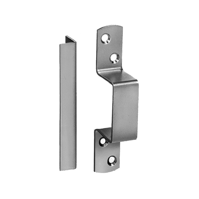 gâche à pattes 30 mm, gâche plate CF, olive nickelée mat montée sur la serrure, à l'extérieur rosace MS brossée nickelée mat avec disque rouge/vert