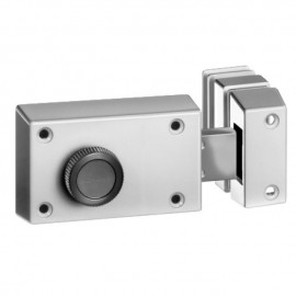 Verrou massif pour portes palières en bois, pour cylindres extérieurs avec languette excentrique, le cylindre est monté directement sur la plaque de base du verrou, avec fixation du boîtier non apparente, pour des portes s'ouvrant à l'extérieur la gâche à équerre 0-B-6052W est à utiliser